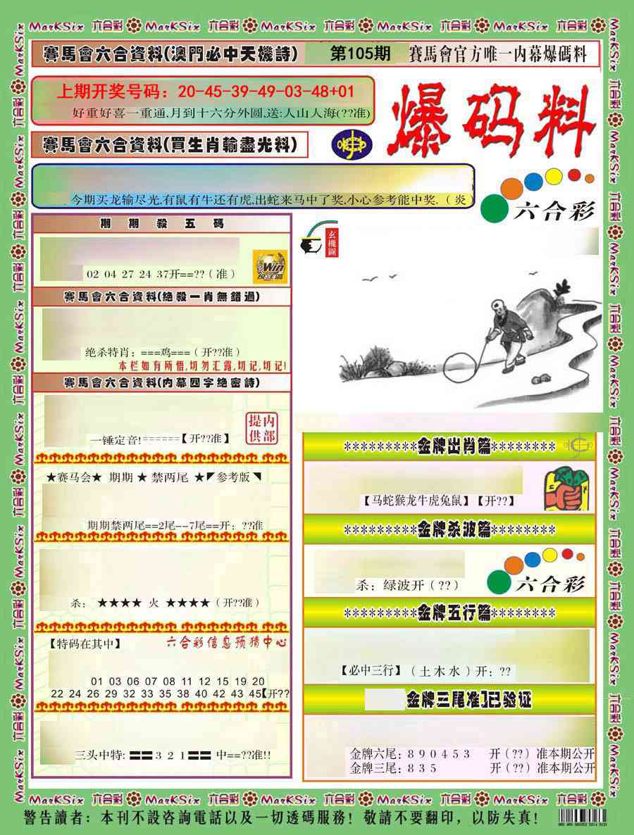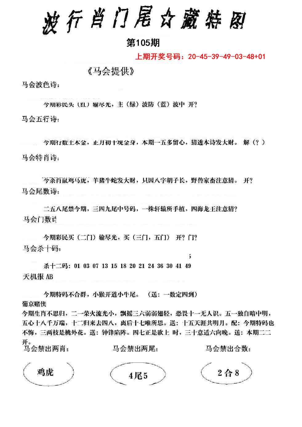 | 039期:杀肖 | 马龙鸡 | 開:?00准 |