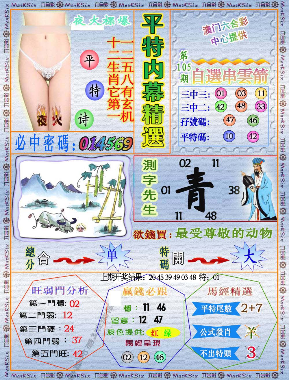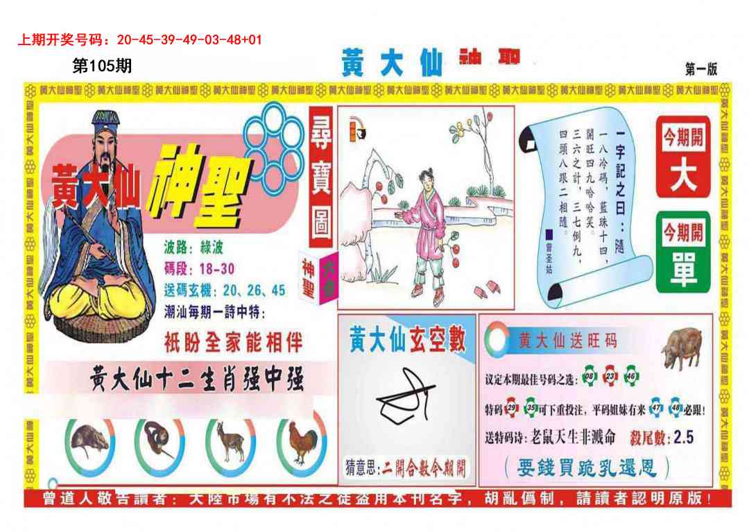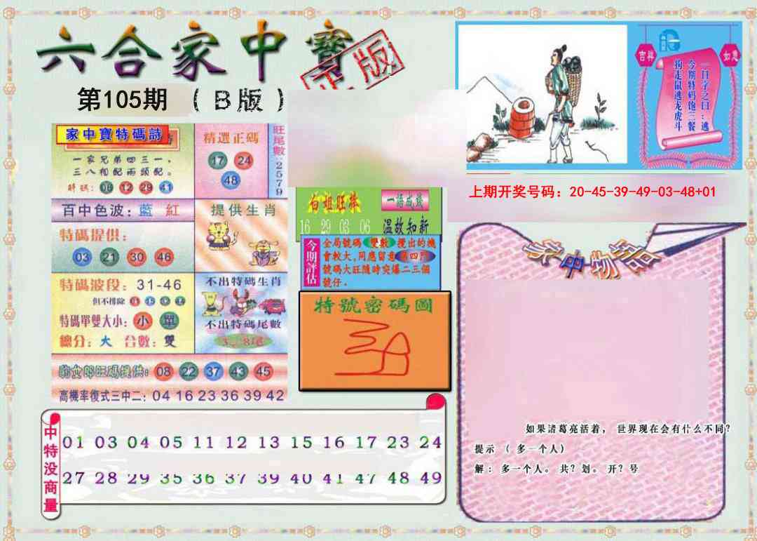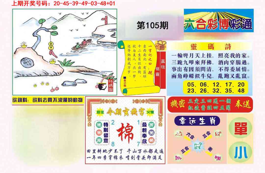 | 037期 | 单数+牛兔 | 開:马49准 |