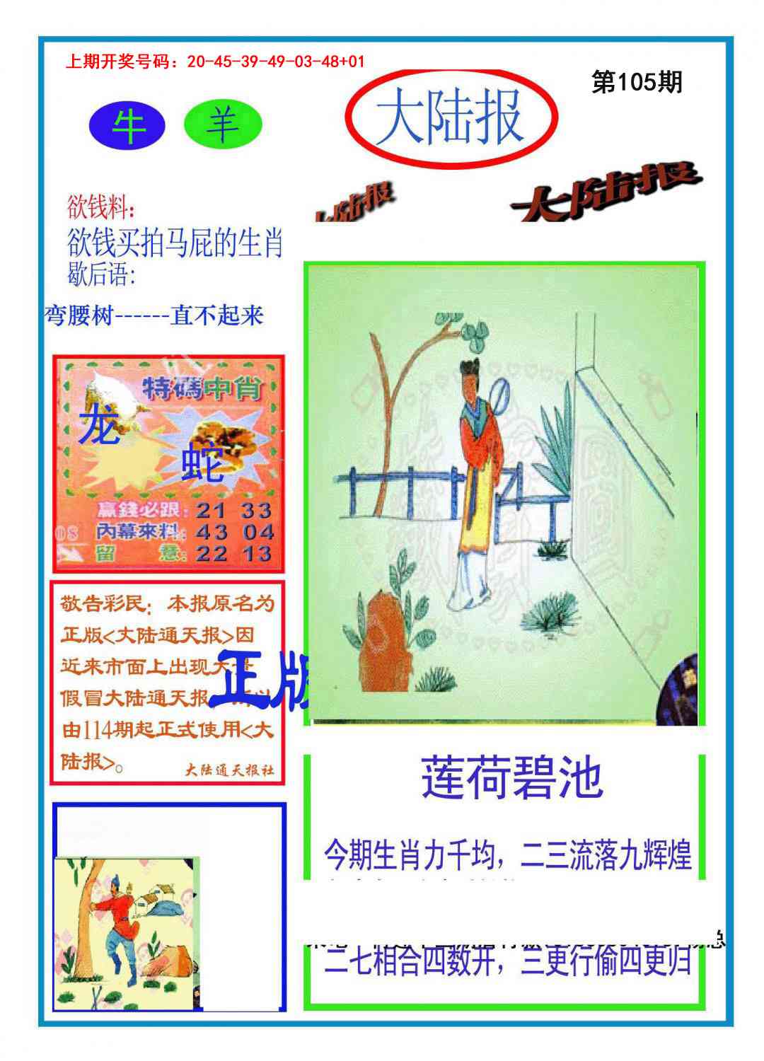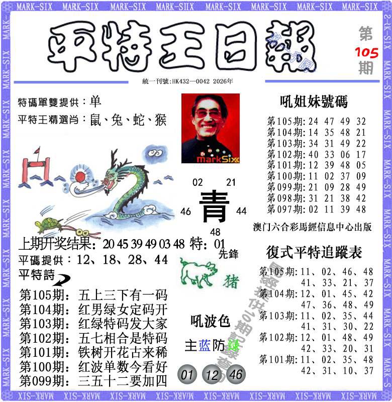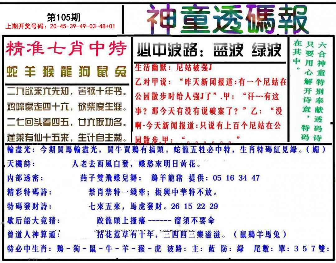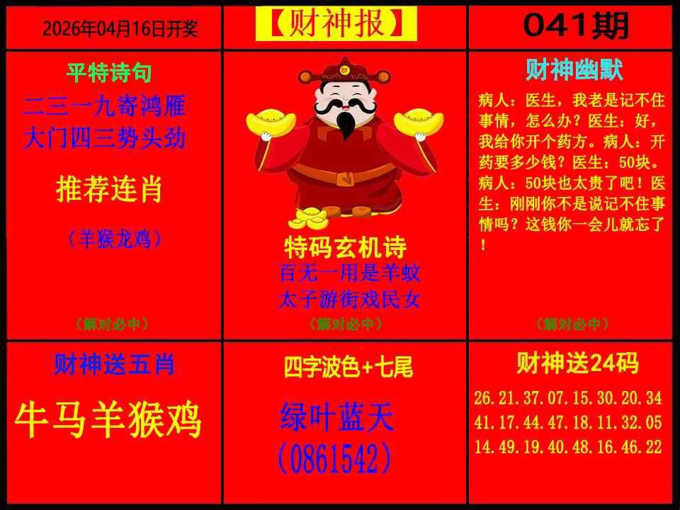 | 037期 | 单数+牛兔 | 開:马49准 |