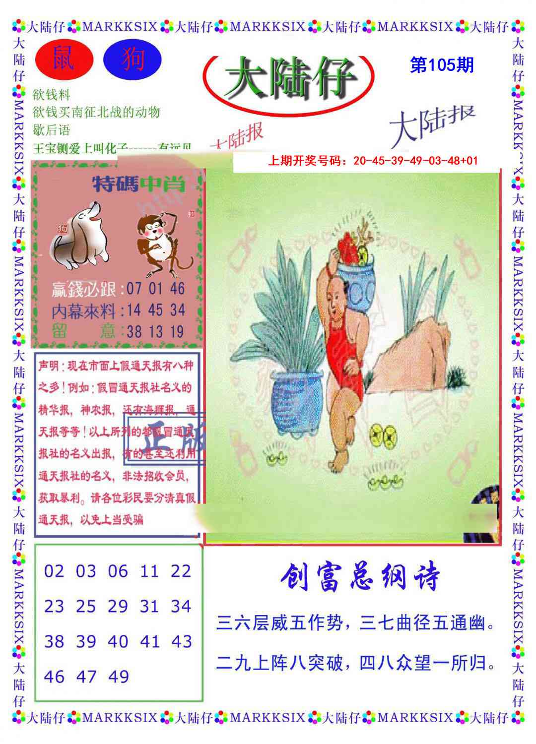 | 036期:尾数 | 0-2-3-4-5-6 | 開:鼠43准 |