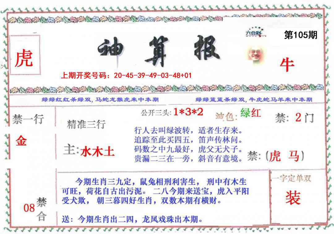 | 039期:单双 | 单数+牛猪 | 開:?00准 |