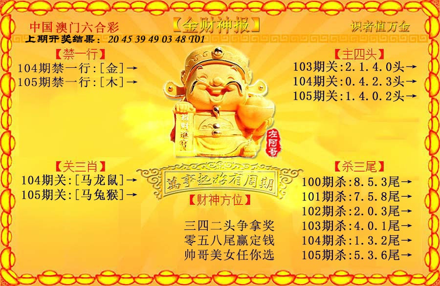 | 038期 | 双数+猴鼠 | 開:?00准 |