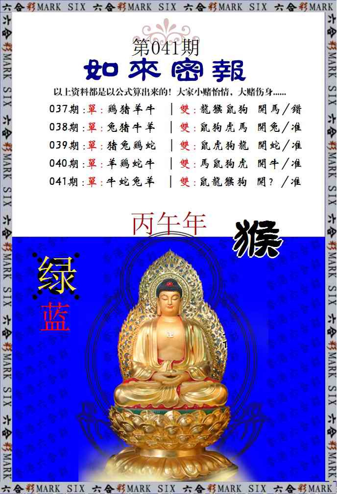 | 037期 | 猴狗牛马鼠 | 開:马49准 |