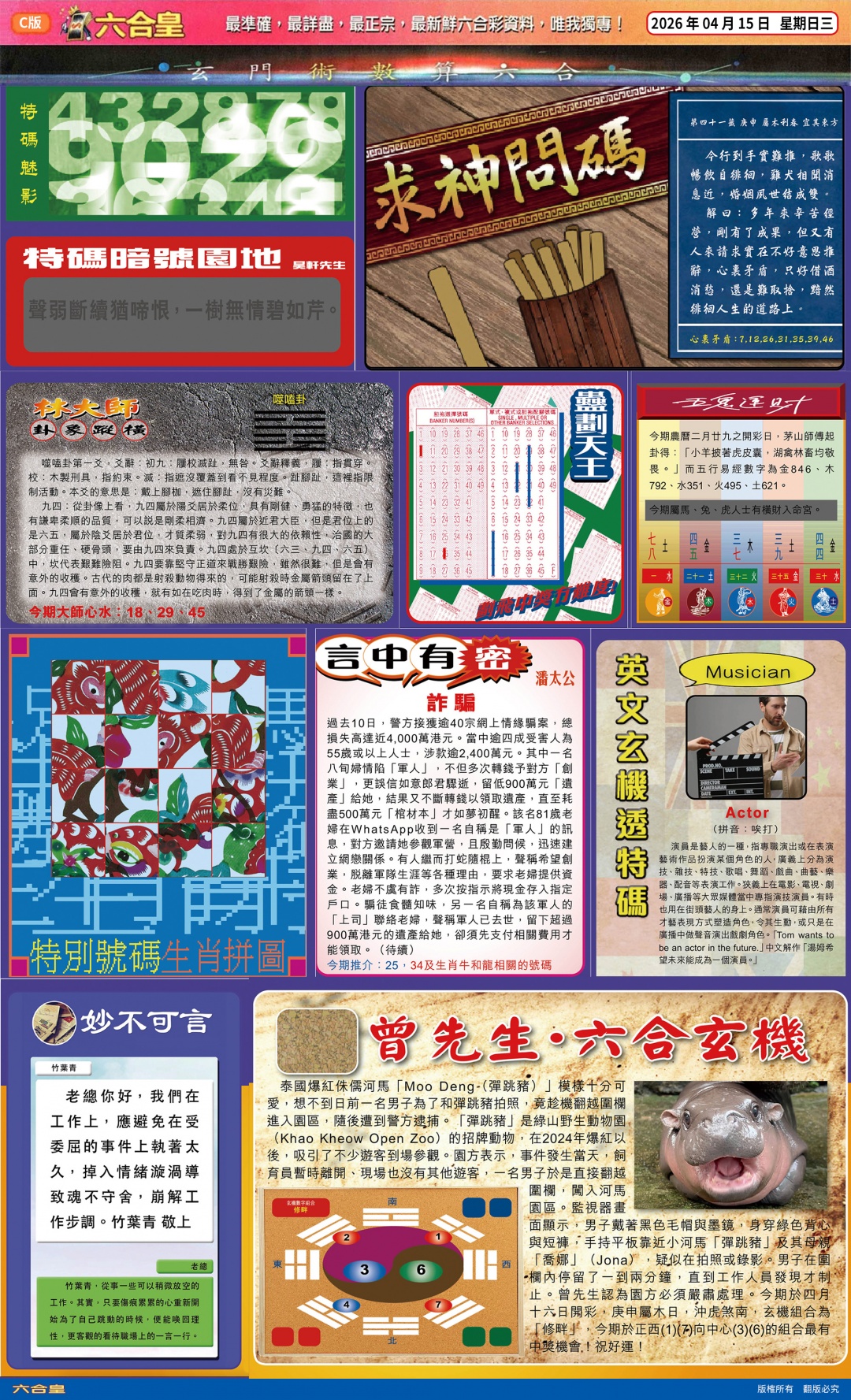 | 035期:家野 | 家禽+兔蛇 | 開:猪44准 |