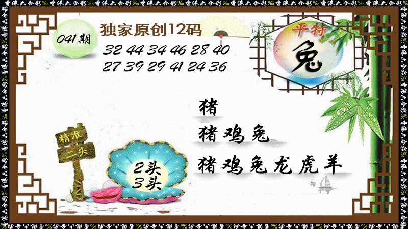 | 035期:三肖 | 鸡兔猪 | 開:猪44准 |
