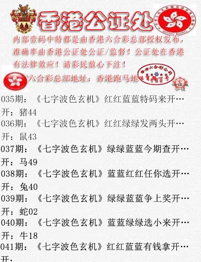 | 035期:波色 | 红波+绿波 | 開:猪44准 |